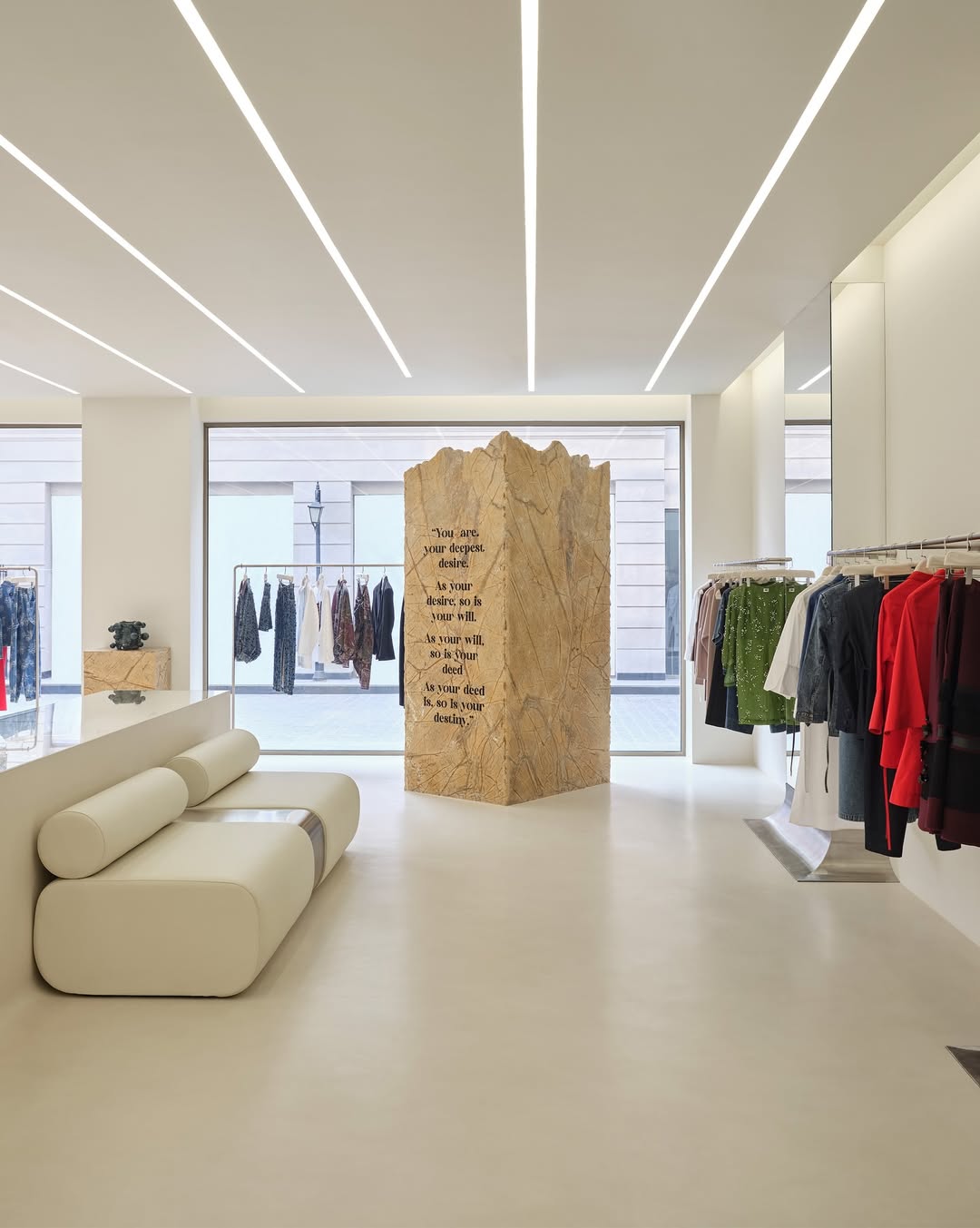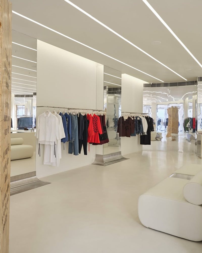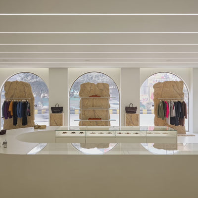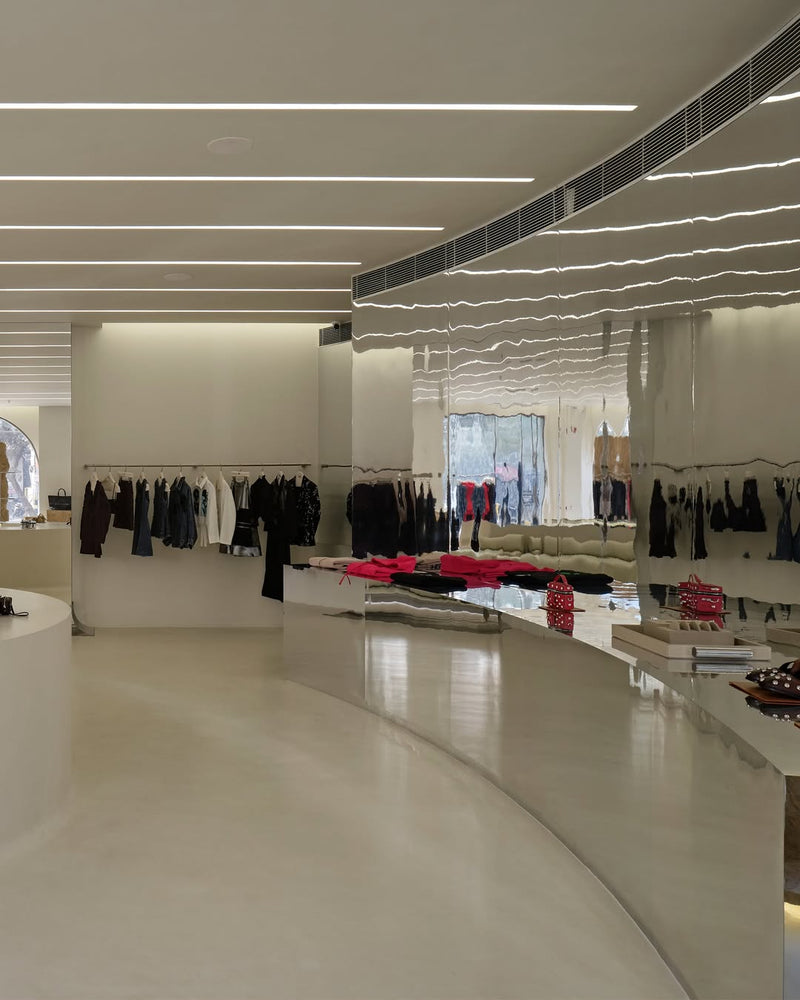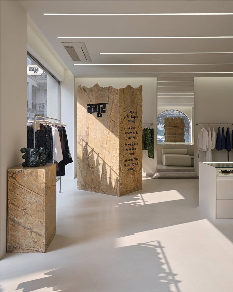 An immersive space that feels like an extension of real life. Rooted in memory but shaped by the now, the store turns the brand’s past and future into a subtle, multi sensory experience. Raw marble, seamless surfaces, softened forms, and precise light, sound, and scent create a calm environment that’s grounded yet fluid. More than a retail setting, it frames pieces made to move with the body, shift with the moment, and carry feeling as much as form. A space built for experience over spectacle, reflecting where we’ve been and what we’re becoming.